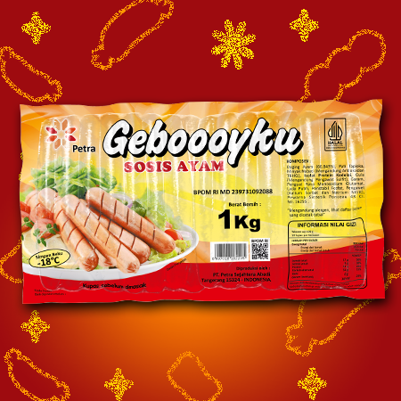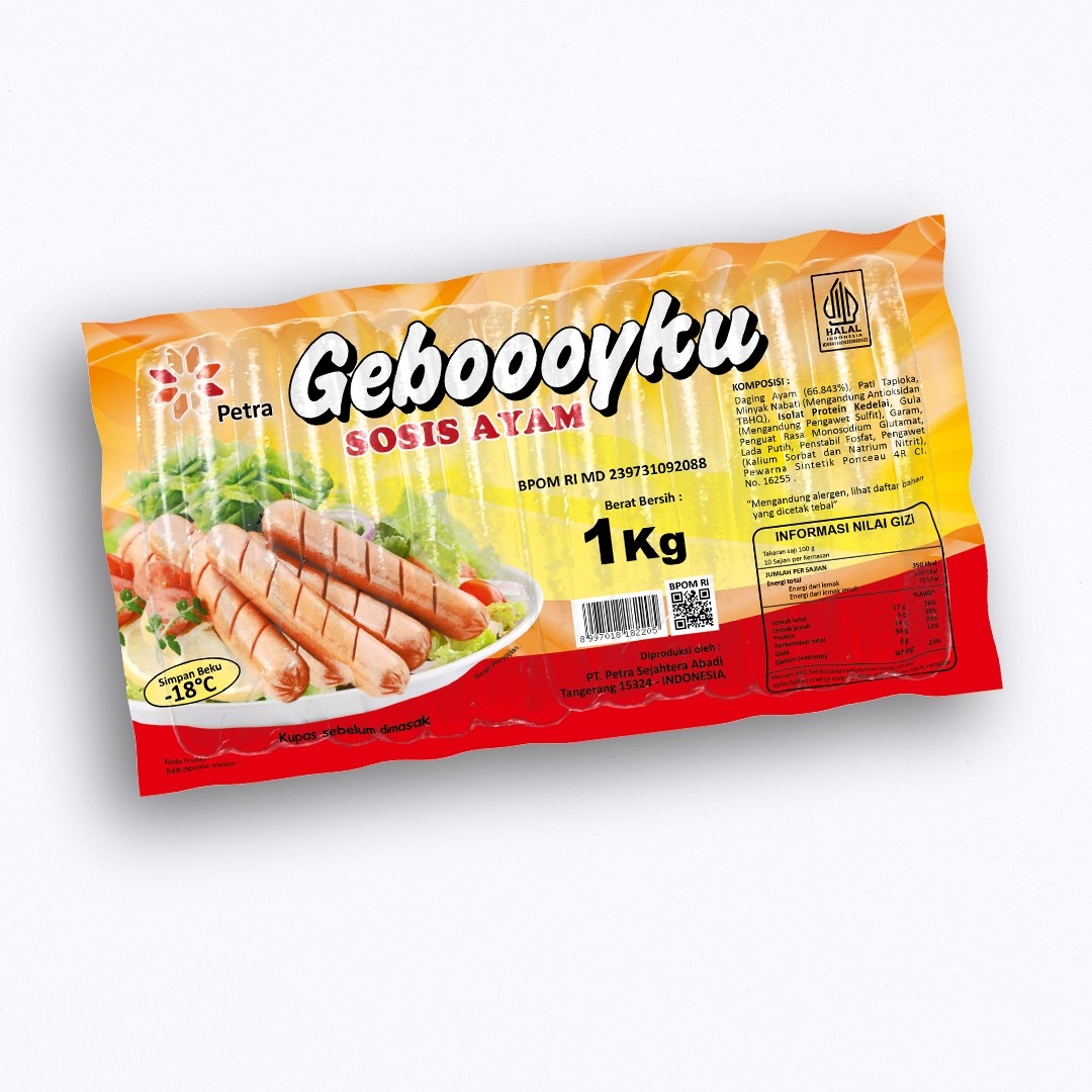Geboooyku Sosis Ayam merupakan produk olahan berbahan dasar daging ayam yang dihaluskan dan ditambahkan tepung hingga menjadi adonan, lalu dikukus dengan menggunakan casing polyamide yang menjadikan tekstur yang kenyal dan juicy, serta dapat diulir. Dengan harganya yang ekonomis menjadikan sosis ini sangat di minati berbagai kalangan pedagang, rombong dan lapak-lapak serta catering dan resto-resto.