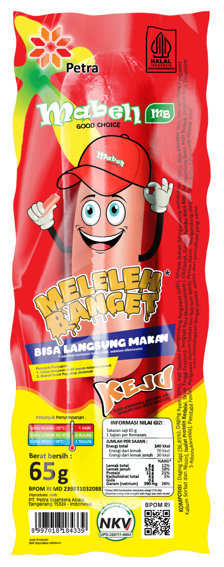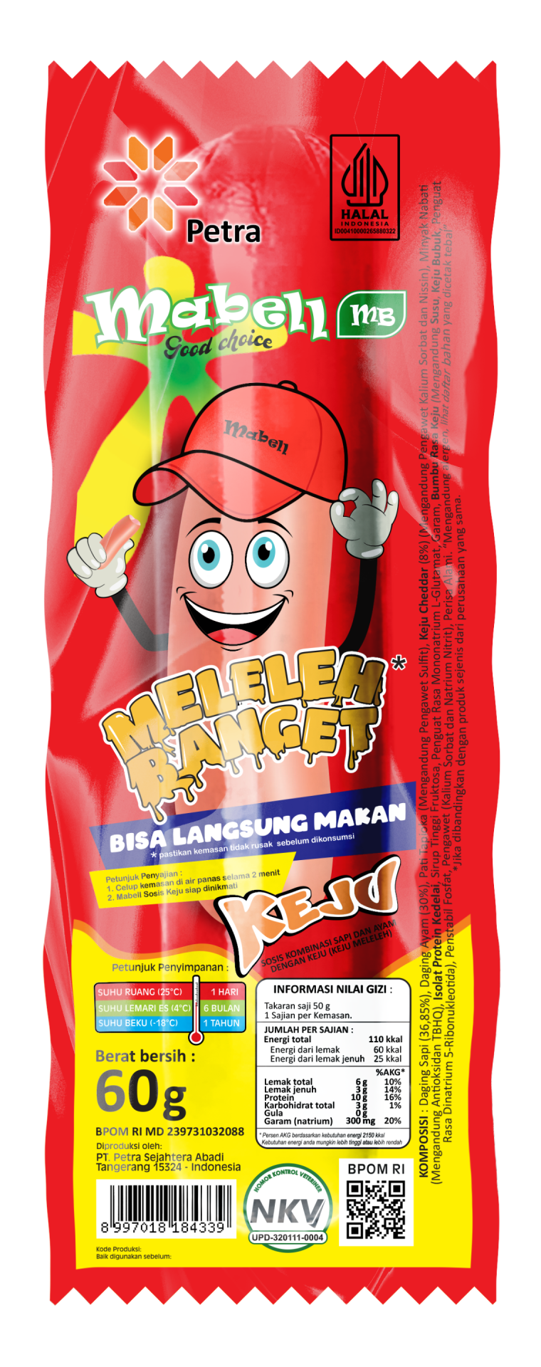 Daging Sapi (36,85%), Daging Ayam (30%), Keju Cheddar 6%, Minyak Nabati (Mengandung Antioksidan TBHQ), Pati Tapioka Termodifikasi, Bawang Putih Bubuk, Isolat Protein Kedelai, Garam, Bumbu (Mengandung Penguat Rasa Mononatrium Glutamat), Dekstrosa, Penguat Rasa Mononatrium Glutamat, Penstabil Fosfat, Gula, Mengandung Pengawet Sulfit.