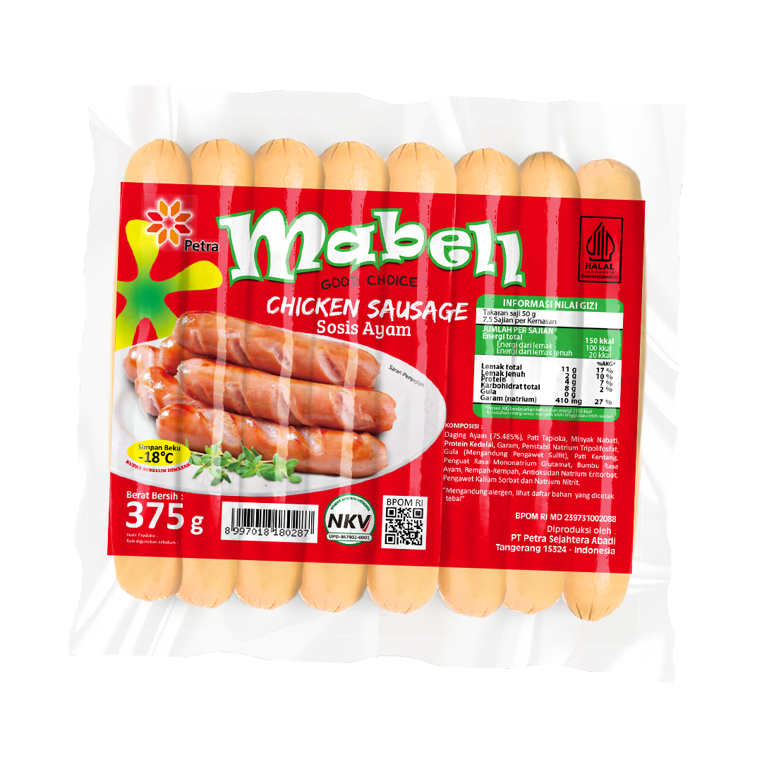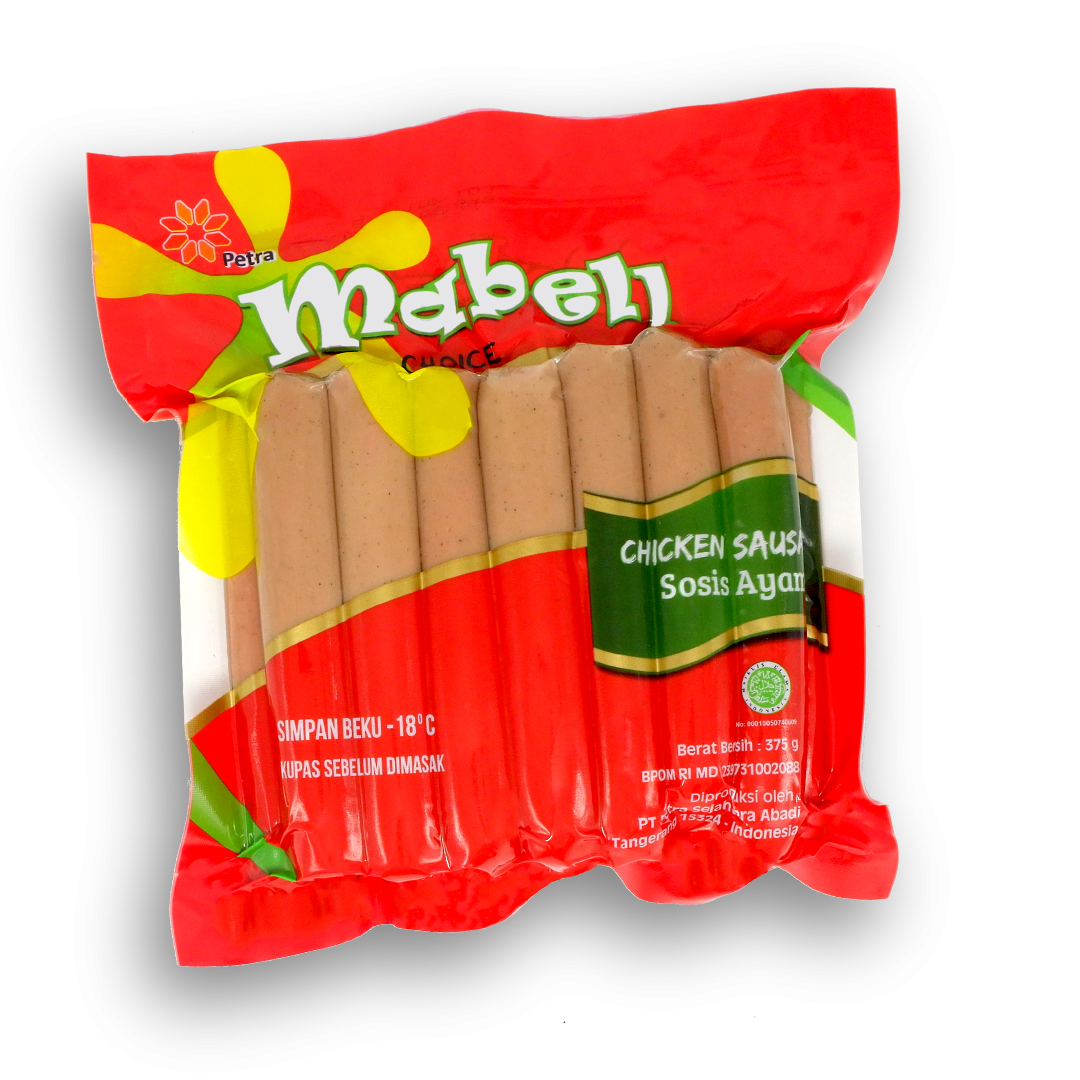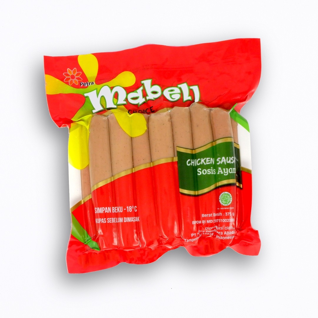 Mabell Sosis Ayam adalah produk olahan asli daging ayam yang di cincang halus dengan racikan menggunakan rempah-rempah pilihan, Mabell Sosis Ayam dibuat khusus masuk kedalam Casing Polyiamade (dikupas sebelum di masak), Dengan Mabell Sosis Ayam dapat melengkapi menu makanan lezat dan digemari banyak kalangan. Menjadi salah satu menu favorit anak-anak dengan harga terjangkau. Tersedia 150g dan 375g
