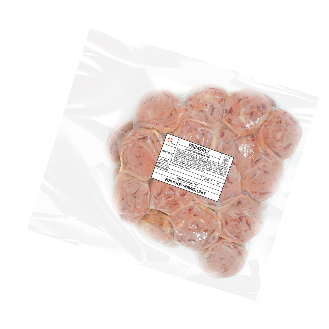 Daging Sapi (63.937%), Pati Tapioka, Minyak Nabati (Mengandung Antioksidan TBHQ), Isolat Protein Kedelai, Garam, Bumbu Rasa Kaldu Ayam (Mengandung penguat rasa Mononatrium Glutamat), Gula (Mengandung Pengawet Sulfit), Penguat Rasa Mononatrium Glutamat, Bawang Putih Bubuk, Rempah-rempah, Penstabil Fosfat, Pengawet (Kalium Sorbat dan Natrium Nitrit), Antioksidan Natrium Eritorbat, Pewarna Sintetik Ponceau 4R CI. No. 16255.