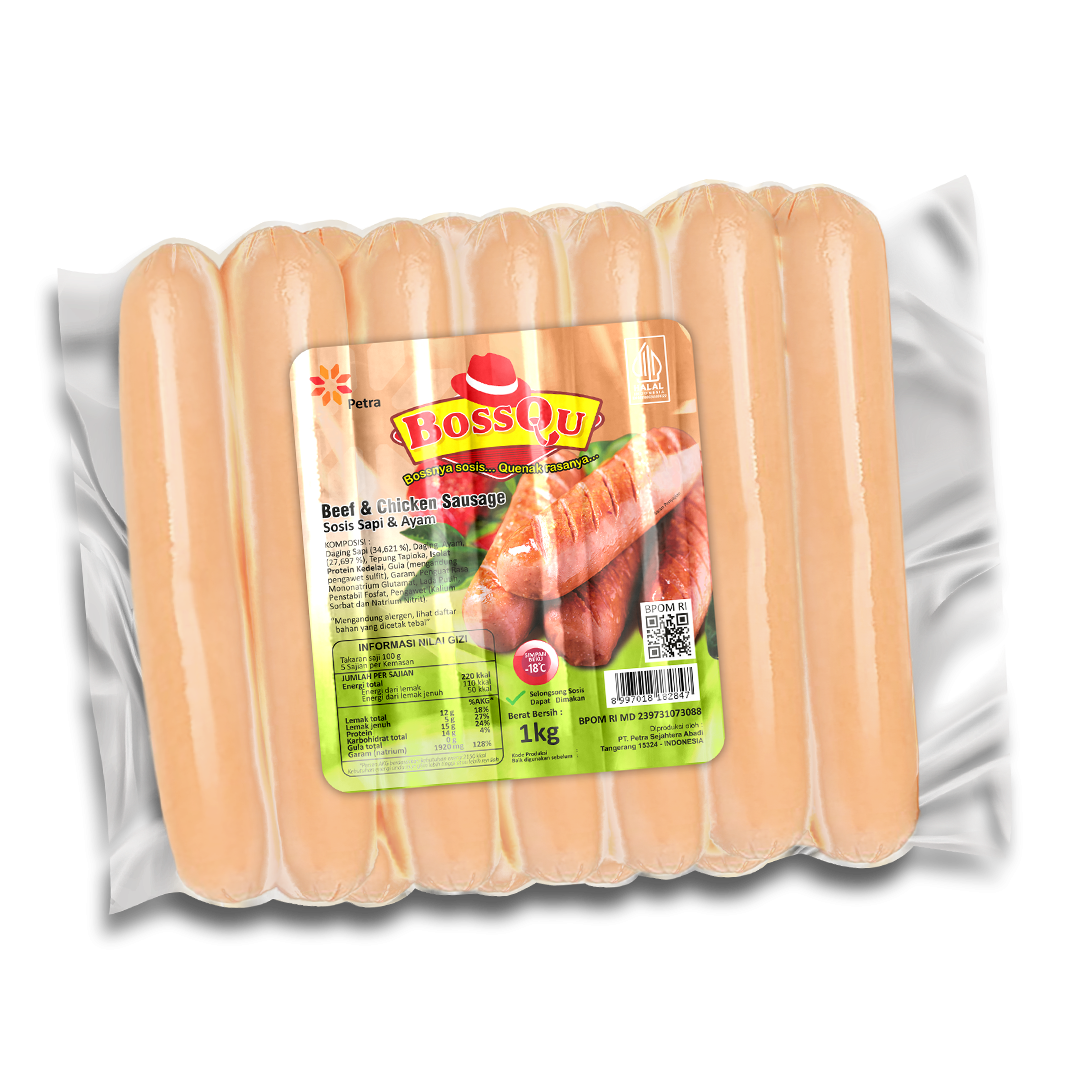 Bossqu adalah olahan original dari daging sapi dan daging ayam pilihan diolah secara higienis dengan menggunakan casing collagen (bisa dimakan & tidak perlu dikupas) sesuai standar internasional dan memiliki sertifikat halal MUI.