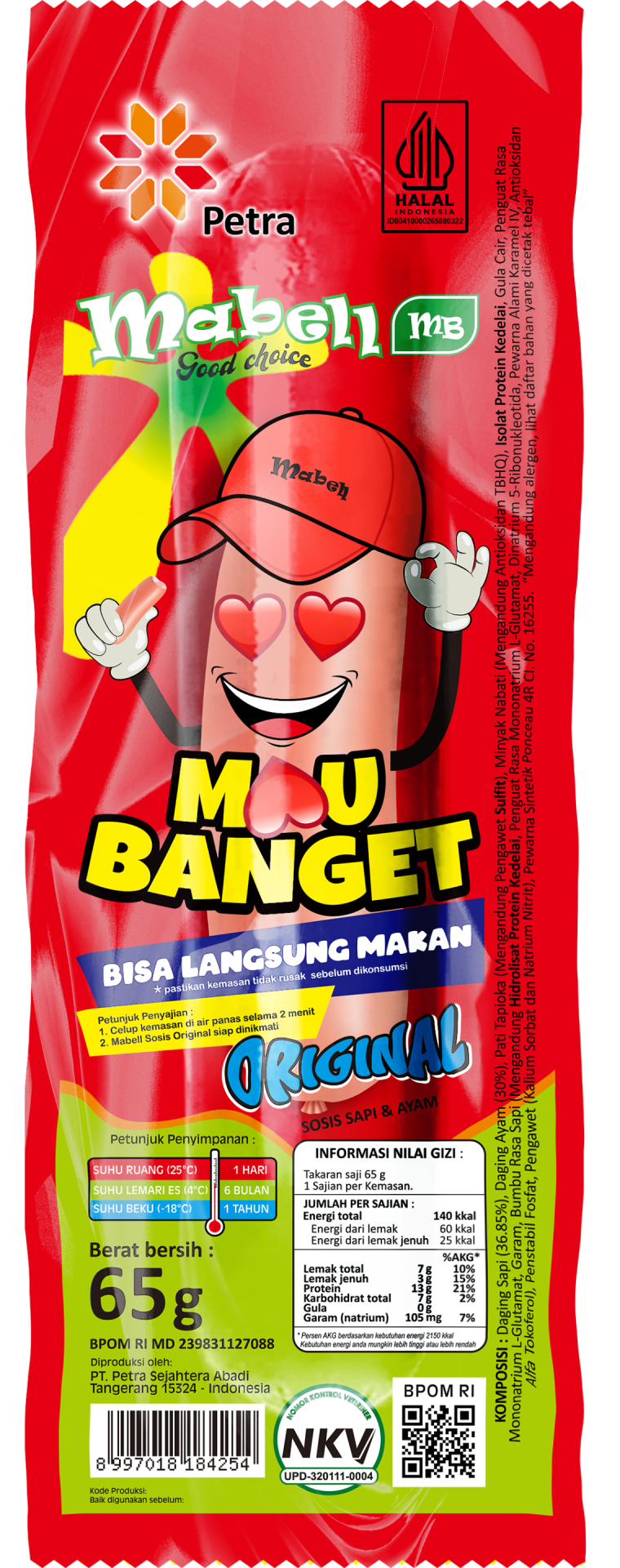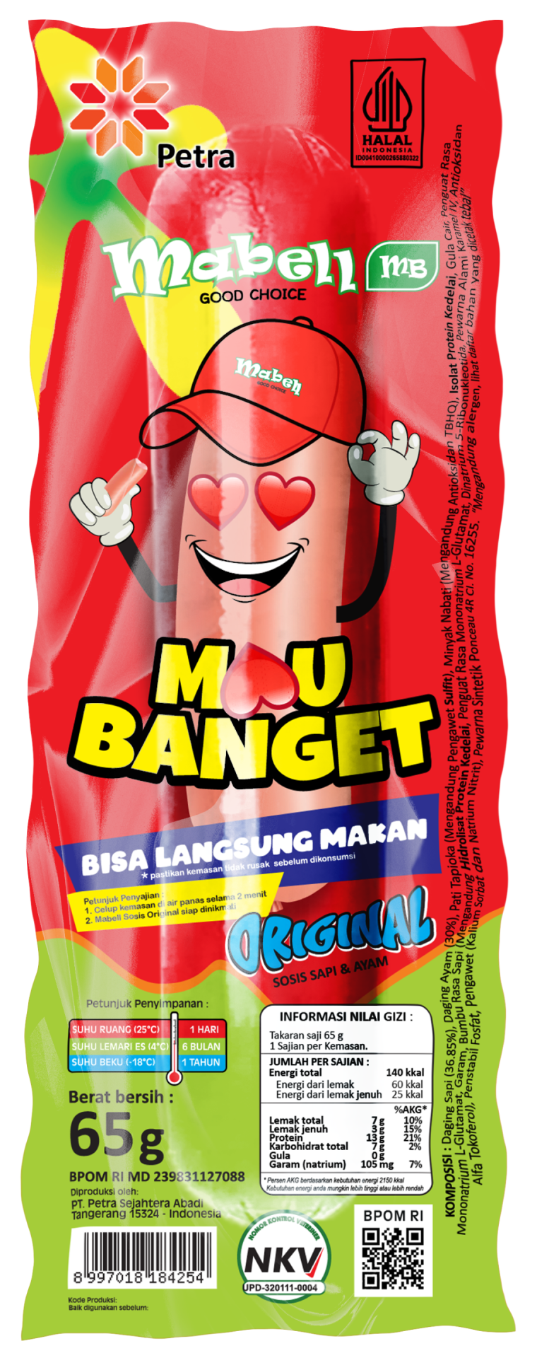 Daging Sapi (36,85%), Daging Ayam (30%), Minyak Nabati (Mengandung Antioksidan TBHQ), Pati Tapioka Termodifikasi, Bawang Putih Bubuk, Isolat Protein Kedelai, Garam, Bumbu (Mengandung Penguat Rasa Mononatrium Glutamat), Dekstrosa, Penguat Rasa Mononatrium Glutamat, Penstabil Fosfat, Gula, Mengandung Pengawet Sulfit.
