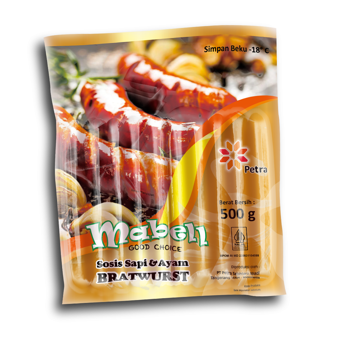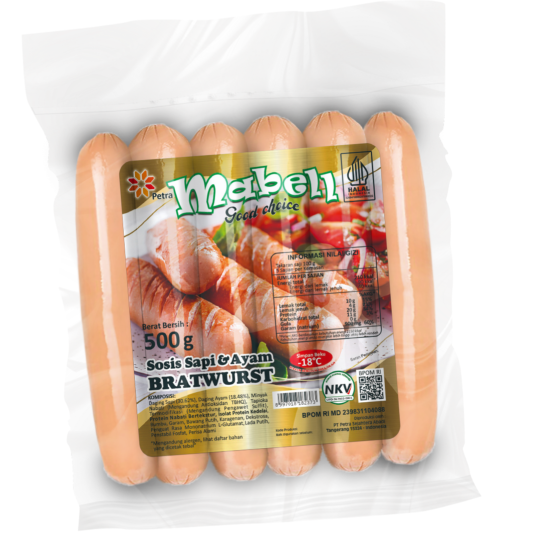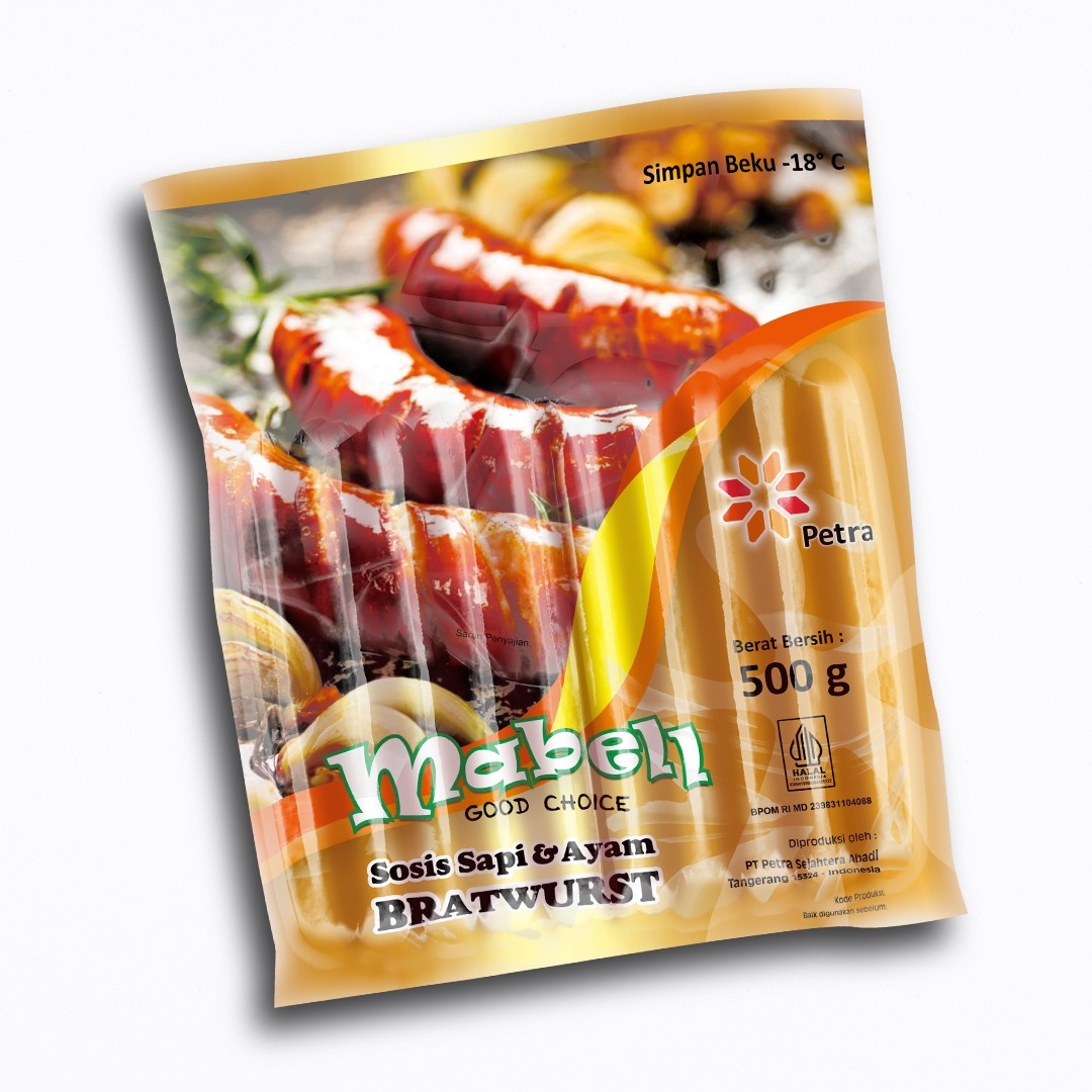 Mabell Sosis Sapi dan Ayam dari olahan Sosis Bratwurst yang cukup terkenal di Indonesia. Menjadi Jenis sosis yang populer bersal Jerman memiliki bentuk tebal dan Panjang. Mabell Sosis Sapi dan Ayam diproses secara higienis yang aman dan bergizi dengan citarasa yang istimewa.